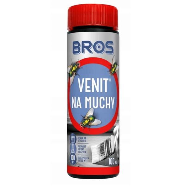 - Preparat BROS – Venit na muchy jest gotowym do użycia płynem, który skutecznie zwalcza zarówno muchy domowe, jak i zwierzęce, w pomieszczeniach mieszkalnych i inwentarskich.