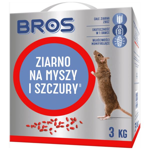 Ziarno BROS do zwalczania myszy i szczurów jest przeznaczone do stosowania wewnątrz oraz wokół budynków. Produkt powinien być używany wyłącznie w odpornych na manipulację stacjach deratyzacyjnych. Zawiera silnie wabiącą przynętę i wykazuje skuteczność już po jednokrotnym spożyciu.