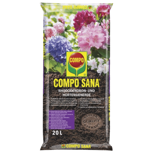 • Compo Sana Podłoże dostarcza kwaśne środowisko (pH 4,0–4,5), idealne dla rododendronów, azalii i hortensji.