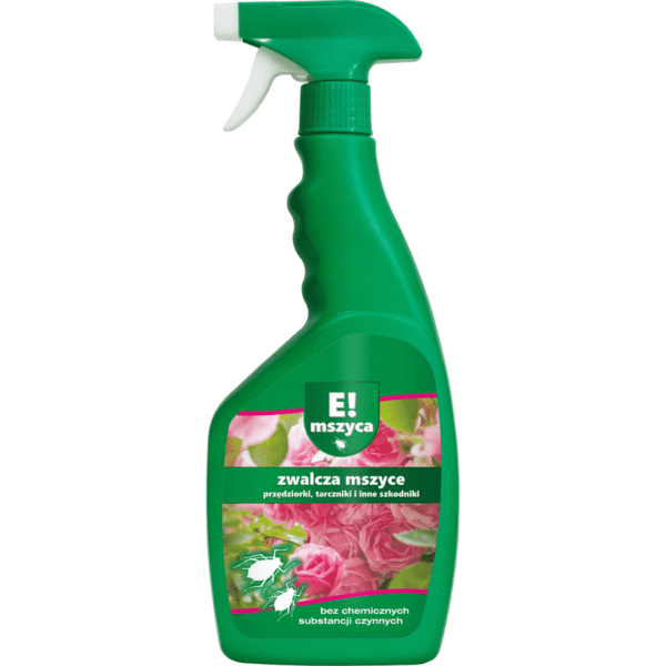 E! MSZYCA to gotowy do użycia płyn w postaci roztworu wodorozpuszczalnych polimerów, który skutecznie eliminuje szkodniki takie jak mszyce, mączliki szklarniowe, przędziorki, miodówki, wciornastki, wełnowce oraz tarczniki – zarówno larwy, jak i młode stadium gąsienic. Jego działanie polega na mechanicznym odcięciu szkodnika od dostępu do powietrza. Regularne stosowanie znacząco redukuje liczbę szkodników, a produkt może być używany zarówno w domach, na balkonach, jak i w ogrodach oraz na działkach.